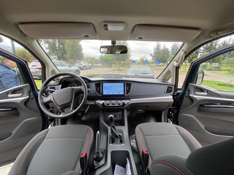 La Forthing M3L ofrece un interior moderno y funcional, equipado con aire acondicionado y calefacción bidireccional para mayor confort en todas las filas, elevavidrios eléctricos delanteros, y una pantalla de 10” con sistema Android que brinda conectividad y entretenimiento. Además, cuenta con luz de salón delantera y trasera, viseras para chófer y copiloto, y un tablero de diseño lujoso, pensado para combinar comodidad y estilo en cada viaje.
